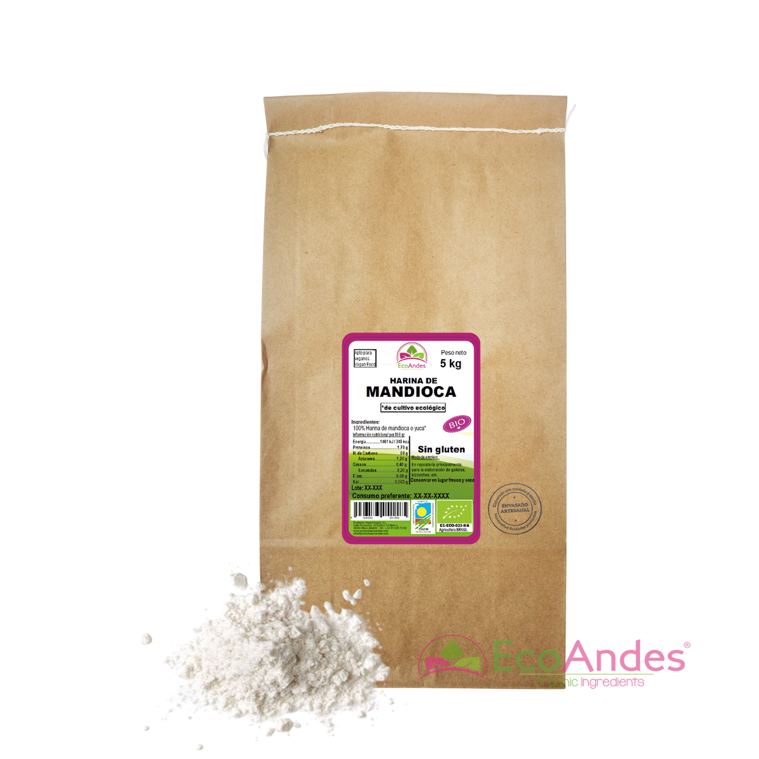 Harina de mandioca de producción ecológica
