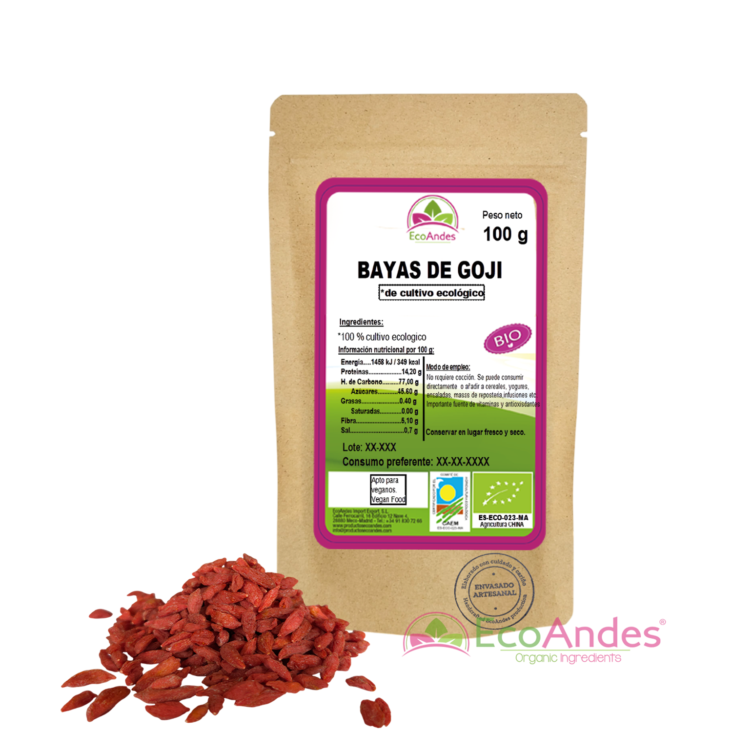 Bayas de Goji (100%) BIO – Procedente de cultivo ecológico.