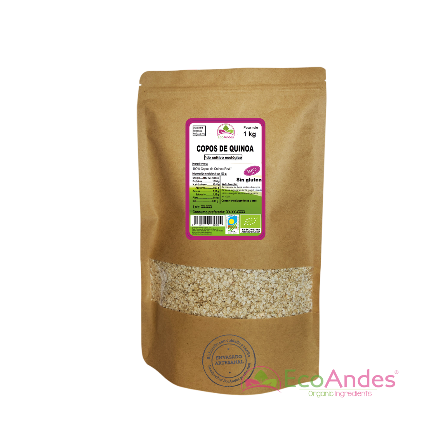 Copos de quinoa (100%) – Procedente de cultivo ecológico.