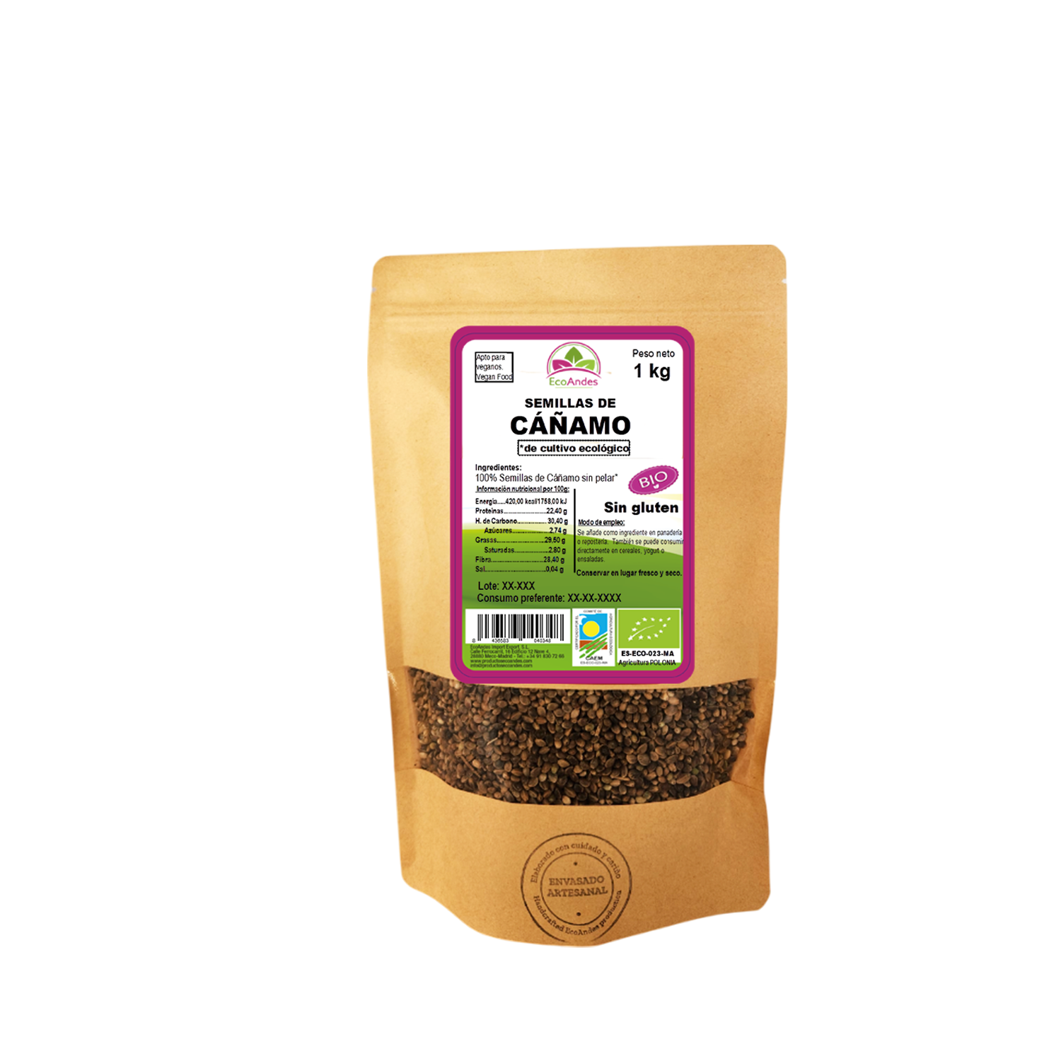Semillas de cáñamo (100%) – Procedente de cultivo ecológico.